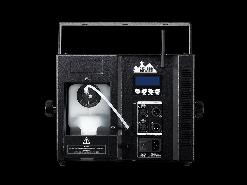 DFZ-800 新森林 DFZ-800新森林是專為高等酒吧和小型演出而開發(fā)的耐用型小型薄霧機(jī)。機(jī)器自帶遙控和DMX功能,采用中文顯示,操作更方便更人性化;采用3L的防漏型油桶,不但消除了您頻繁添加煙油的煩惱,更讓您無需擔(dān)心運(yùn)輸或機(jī)器傾倒時造成煙油溢出等問題;采用防滑落設(shè)計的油桶,令油桶取出和固定等操作方便又保險;輕薄設(shè)計、重量輕、功能全、煙霧輸送距離遠(yuǎn),不會產(chǎn)生焦味,不污染鏡片,是高等酒吧和各種小型演出場的薄霧機(jī)終結(jié)者。 產(chǎn)品特點 采用新型加熱器,煙霧干燥無水滴; 采用3L的防漏型油桶; 超靜音設(shè)計;噴煙聲音輕柔,出煙均勻輕薄,中等煙霧輸出量; 耗油量低,小巧輕便; 采用無油保護(hù)系統(tǒng),使用更保險; 外置天線,高靈敏度遙控性能; 請使用原廠DJPOWER高品質(zhì)PRO-C專業(yè)高濃度霧油或PRO-J高檔酒吧專供霧油,否則機(jī)器會噴水或堵塞! 注:實際效果可能會受到使用環(huán)境影響。 技術(shù)參數(shù) 交流電源 使用電壓:AC 220-240 V, 50/60 Hz 限流保險:F8 A, 250 V 總功率:1,200 W 加熱 預(yù)熱時間:約 50 秒 輸出 最大輸出煙霧量:約 6,000 立方英尺/分鐘 最大輸出耗油量:約 167 min/L 最大覆蓋面積:約 250 ㎡(5 min彌漫) 控制 無線遙控器:W-4 DMX-512:? DMX通道數(shù):2 容量 油桶容積:3 L 重量和尺寸 凈重:11.0 kg 毛重:12.6 kg 機(jī)器尺寸:379 × 310 × 286 mm 包裝尺寸:445 × 445 × 410 mm 使用耗材 耗材:PRO-JS 或 PRO-C 或 PRO-J 產(chǎn)品案例 15CM國際派對電音工廠 深圳熱舞派對酒吧 東莞H-club酒吧 河北霸州拿鐵酒吧 相關(guān)下載 DFZ-800中文說明書DFZ-800中文說明書 DFZ-800 MA燈庫DFZ-800 MA燈庫 DFZ-800 老虎燈庫DFZ-800 老虎燈庫 相關(guān)配件 相關(guān)耗材 PRO-C 專業(yè)高濃度霧油 PRO-J 高檔酒吧專供霧油 相關(guān)設(shè)備 H-3 飛霧機(jī)