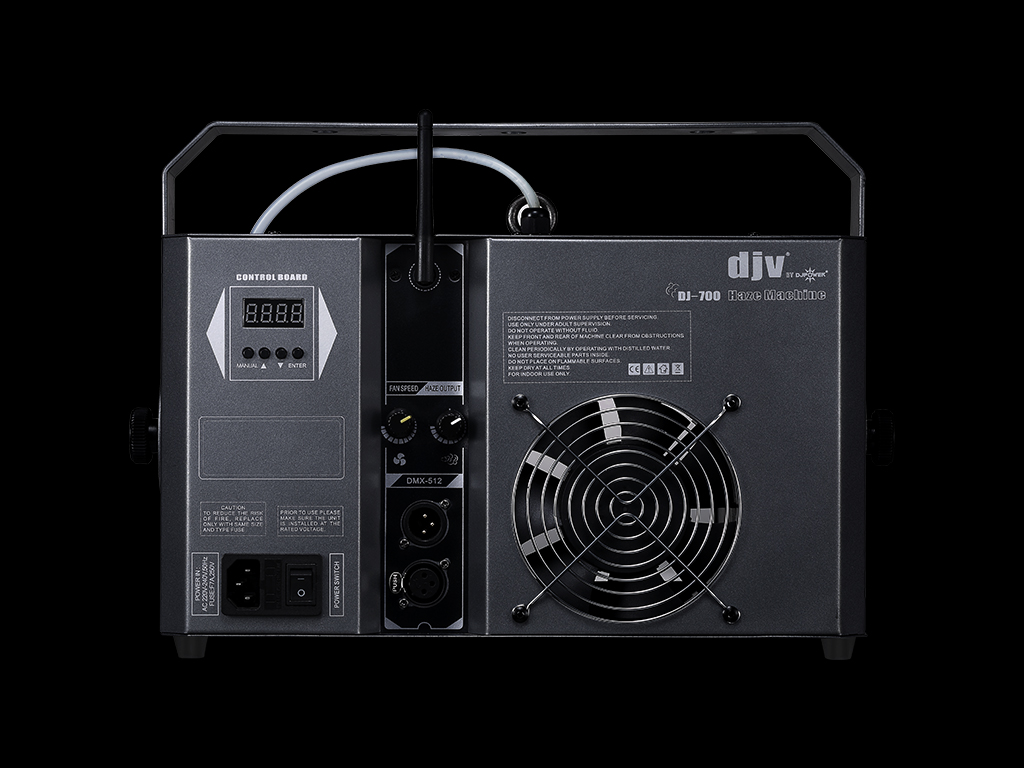 DJ-700 舞臺薄霧機 DJ-700 舞臺薄霧機,耗油量低,體積小,重量只有6kg。簡約而不簡單,小體積大容量,附帶3L油桶,加滿油的情況下,最大輸出工作時間約11小時。無論是懸掛還是置放在地上使用,都可以通過吊架輕松調(diào)節(jié)噴霧的角度。沒有繁瑣的操作,沒有復(fù)雜的界面,便捷式旋鈕開關(guān),一個調(diào)節(jié)風(fēng)速,一個調(diào)節(jié)輸出量,一目了然,輕松上手! 產(chǎn)品特點 均勻輕薄的薄霧效果; 不會產(chǎn)生焦味,不污染鏡片; 數(shù)碼管顯示,地址碼設(shè)置方便; 低噪環(huán)保,耗油量低; 體積小巧,重量輕; 請使用原廠DJPOWER高品質(zhì)PRO-C專業(yè)高濃度霧油或PRO-J 專業(yè)高等酒吧專用霧油,否則機器會噴水或堵塞! 注:實際效果可能會受到使用環(huán)境影響。 技術(shù)參數(shù) 交流電源 使用電壓:AC 220-240 V, 50/60 Hz 限流保險:F7A/250V 總功率:1,200 W 加熱 預(yù)熱時間:約 3.0 分鐘 輸出 最大輸出煙霧量:約 4,000 立方英尺/分鐘 最大覆蓋面積:約 200 ㎡(5 min彌漫) 最大輸出耗油量:約 250 min/L 控制 無線遙控器:W-4 DMX-512:? DMX通道數(shù):2 容量 油桶容積:3.0 L 重量和尺寸 凈重:6 kg 毛重:7.4 kg 機器尺寸:396 × 200 × 277 mm 包裝尺寸:460 × 315 × 315 mm 使用耗材 耗材:PRO-C 或 PRO-J 或 DJV-003 相關(guān)下載 DJ-700中文說明書DJ-700中文說明書 DJ-700 MA燈庫DJ-700 MA燈庫 DJ-700 老虎燈庫DJ-700 老虎燈庫 相關(guān)配件 W-4 相關(guān)耗材 PRO-C 專業(yè)高濃度霧油 PRO-J 高檔酒吧專供霧油 DJV-003 DJV精品霧油 相關(guān)設(shè)備 DJ-300 KTV霧寶寶